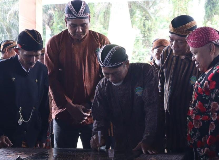 Selain ditandai dengan pengguntingan pita, acara pemanfaatan Pendopo Sasono Langen Mulyo itu, juga dilakukan penandatanganan prasasti oleh Bupati Merangin H Mashuri.