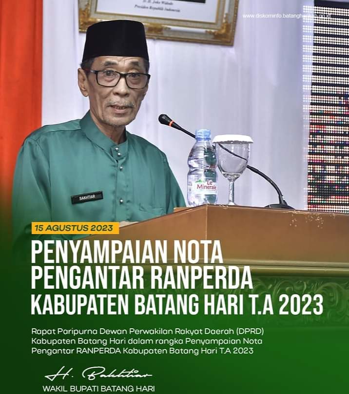 Hal ini disampaikan Wakil Bupati Batanghari, H. Bakhtiar, SP saat menyampaikan nota pengantar Lima Ranperda Kabupaten Batanghari tahun anggaran 2023 pada rapat paripurna DPRD Batanghari, Selasa (15/8/2023).