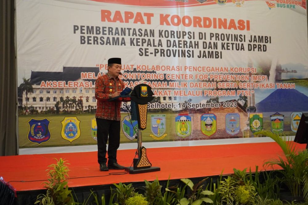 JAMBI - Gubernur Jambi Dr. H. Al Haris, S,Sos, MH menyatakan kesiapan pPemerintah Provinsi Jambi untuk memperkuat kolaborasi pemberantasan korupsi. Penyataan ini disampaikannya pada Rapat Koordinasi Pemberantasan Korupsi Di Provinsi Jambi, bertempat di Swiss-Belhotel Jambi, Kamis (14/09/2023).