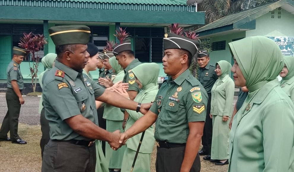 MERANGIN - Menjadi kebanggaan dan suatu kehormatan ketika prajurit TNI AD menerima kenaikan pangkat satu tingkat dari pangkat sebelumnya. Begitu juga dengan prajurit Kodim 0420/Sarko di naikan pangkat pada periode 1 Oktober 2023. Senin (2/10/2023). Dandim 0420/Sarko Letkol Inf Amaraldo Cornelius menjelaskan penyematan pangkat baru bagi prajurit Kodim 0420/Sarko seyogyanya di laksanakan tepat pada 1 Oktober 2023. Di karenakan ada agenda lain dan di laksanakannya upacara peringatan Hari Kesaktian Pancasila di dua Kabupaten yakni Merangin dan Sarolangun Provinsi Jambi. Maka di jadwalkan hari ini, namun tidak mengubah makna dari kenaikan pangkat bagi prajurit tersebut. Ketika memimpin acara kenaikan pangkat bagi parjurit Kodim 0420/Sarko. Dandim menyampaikan beberapa atensi antara lain kenaikan pangkat satu tingkta dari pangkat sebelumnya merupakan pemberian kehormatan dan penghargaan dari Pemerintah Negara Indonesia melalui TNI AD. Kenaikan pangkat bukanlah sekedar penyematan saja akan tetapi menjadi pertanggungjawaban dan amanah untuk pelaksanaan tugas kedepan yang lebih baik lagi. Dengan pangkat baru tentunya menjadi motivasi, sehingga bisa meminimalisir pelanggaran. Tanamkan dalam jiwa bahwa ketika kita sudah di percaya oleh Negara dengan kenaikan pangkat baru satu tingkat lebih tinggi dan ini harus di pertanggung jawabkan. “Pangkat sudah naik, sikap, perilaku dan tauladan menjadi contoh untuk keluarga, masyarakat dan rekan-rekan di satuan”, tegas Dandim. Sebanyak 48 orang prajurit Kodim 0420/Sarko resmi menyandang pangkat baru periode 1 Oktober 2023 terdiri dari 24 orang Bintara dan 24 orang Tamtama. Atas nama keluarga besar Kodim 0420/Sarko saya mengucapkan selamat dan sukses atas kenaikan pangkat satu tingkat dari pangkat sebelumnya.