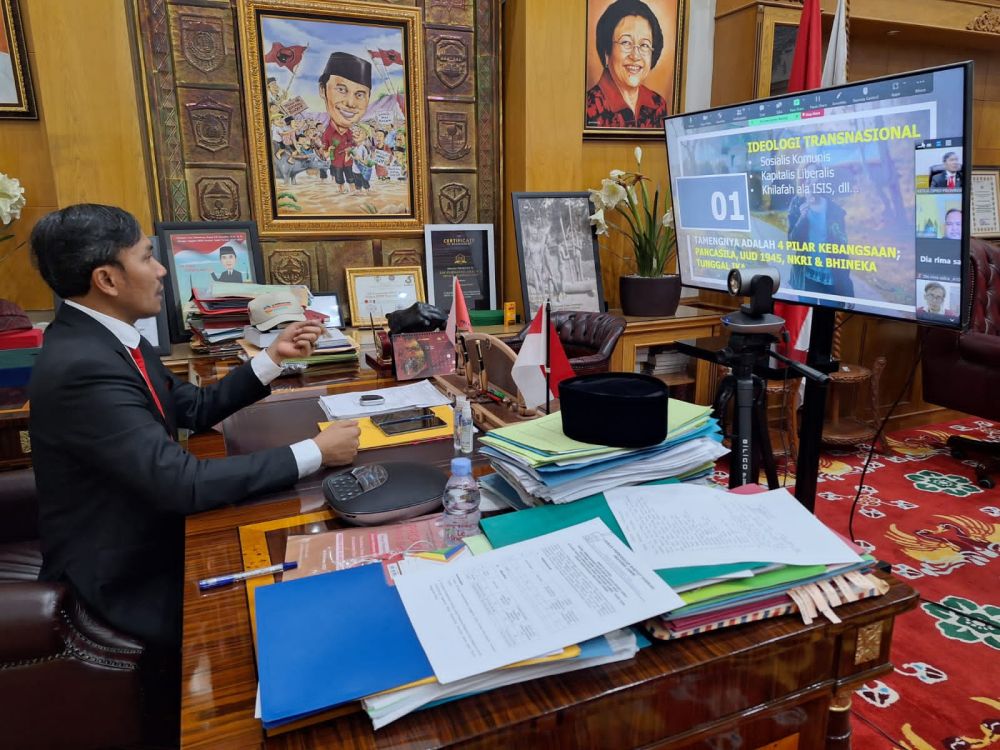 JAMBI - Ketua DPRD Provinsi Jambi, Edi Purwanto menjadi pemateri utama dalam pelaksanaan Refleksi Sumpah Pemuda yang diselenggarakan secara daring oleh Forum Dosen Muda Jambi, Sabtu (28/10). Kegiatan ini diikuti oleh sejumlah dosen muda Jambi yang tidak hanya mengajar di perguruan tinggi di Jambi namun juga di luar Jambi.