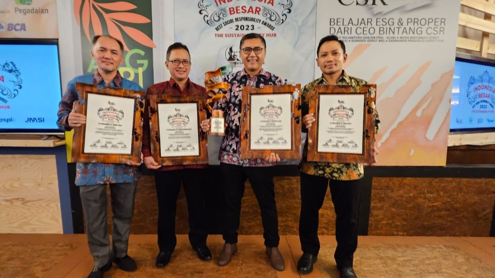 Penghargaan atau apresiasi Sertifikat Review Indonesia BESAR diserahkan langsung oleh Chairman La Tofi School of Social Responsibility, La Tofi, kepada Senior Manager Relation Regional 1, Yudi Nugraha, di Jakarta, pada Rabu (25/10/2023).
