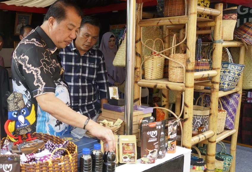 ‘’Jadi berbagai produk Usaha Makro Kecil Menengah (UMKM) dipamerkan di stand ini, semua hasil kreativitas dan kerajinan masyarakat Merangin dari berbagai desa. Melalui cara promosi seperti ini Merangin akan semakin dikenal orang,’’ ujar Pj Bupati Merangin.