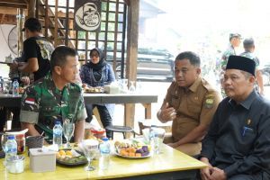 Pangdam berbincang dengan Sekda dan Wakil Ketua Junadi di pojok kopi.
