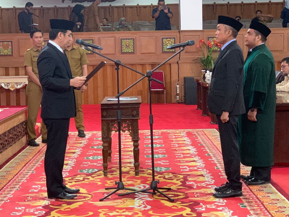 JAMBI - DPRD Provinsi Jambi menggelar rapat paripurna DPRD Provinsi Jambi dengan agenda Peresmian Pengangkatan Sumpah/Janji Pengganti Antar Waktu