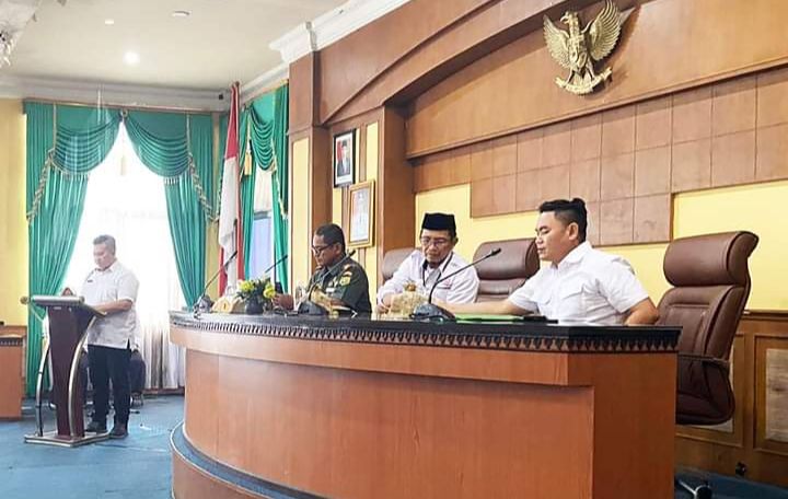 MUARABULIAN - Asisten 1 Setda Batanghari Bidang Pemerintahan dan Kesejahteraan Rakyat, Muhammad Rifa'i secara langsung memimpin Rapat Koordinasi (Rakor) Tim Posko Pemantauan Penyelenggaraan Pemilu serentak tahun 2024.