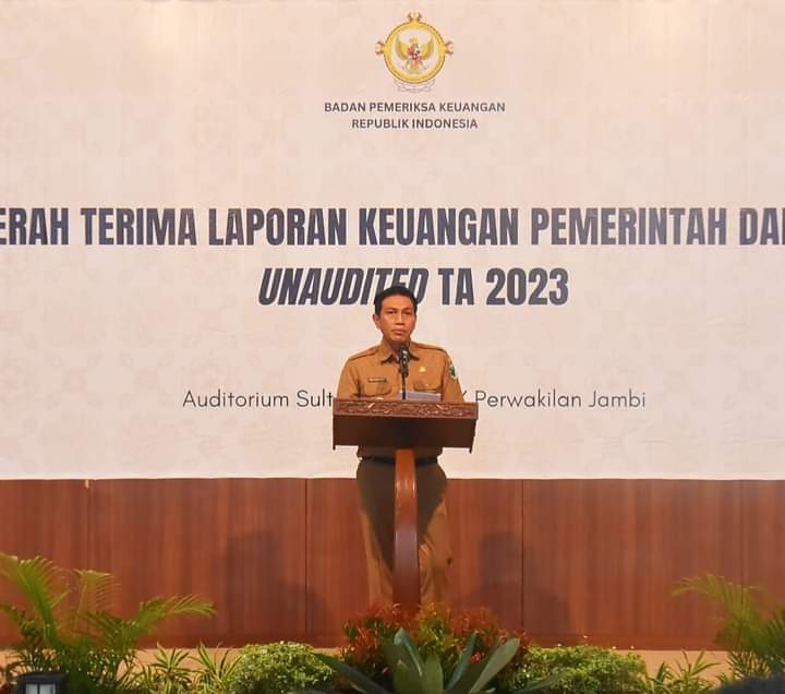 JAMBI - Bupati Batanghari, Muhammad Fadhil Arief, SE secara langsung menghadiri acara serah terima Laporan Keuangan Pemerintah Daerah (LKPD) Unaudited Tahun Anggaran 2023 yang dilaksanakan di Audiotorium BPK Perwakilan Jambi, Senin (4/3/2024).