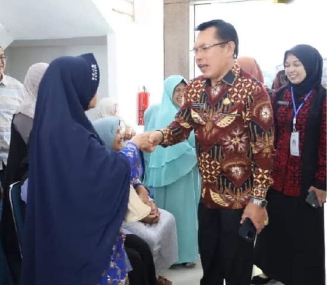 Walikota Sungai Penuh Ahmadi Zubir berinterkasi dengan Calon Jama'ah Haji untuk memastikan setiap calon Jama'ah sehat walafiat sehingga dapat melaksanakan ibadah Haji dengan baik dan pulang dengan baik juga.