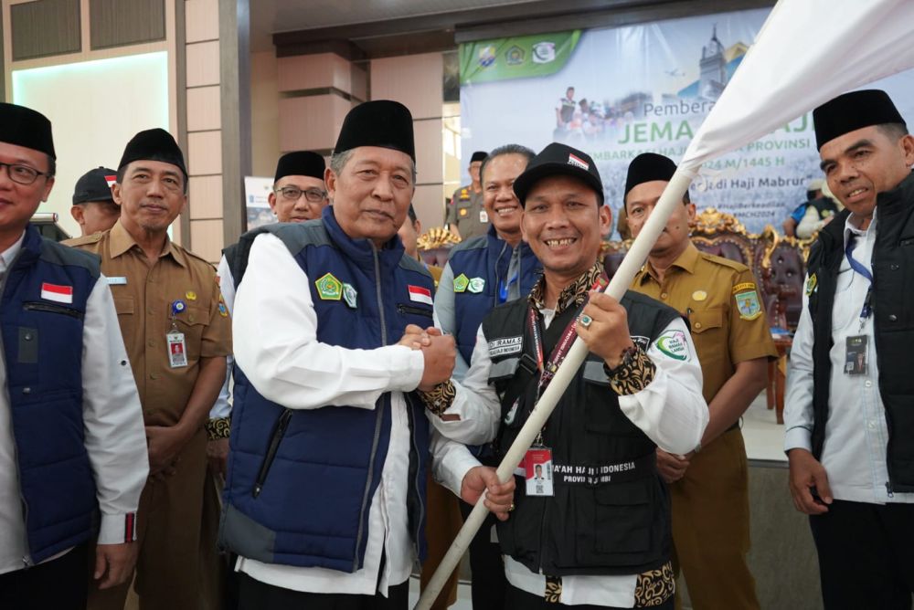 JAMBI - Wakil Gubernur Jambi, Drs. H. Abdullah Sani, M.Pd.I melepas keberangkatan 450 Jemaah Calon Haji (JCH) Provinsi Jambi, dari Kabupaten Sarolangun, Kota Jambi dan Kabupaten Tebo yang tergabung dalam  Kloter 22 Provinsi Jambi Tahun 1445 Hijriah/2024 Masehi, bertempat di Asrama Haji Kota Baru Jambi, Senin (03/06/2024) sore.