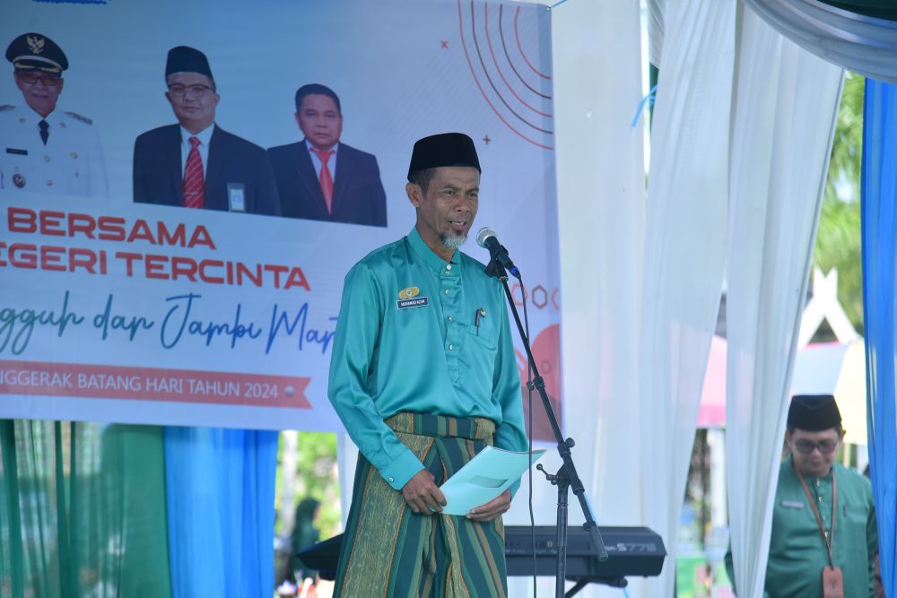 MUARABULIAN - Bupati Batanghari dalam hal ini diwakili oleh Sekretaris Daerah Batanghari, H. Muhamad Azan, SH membuka secara resmi kegiatan "Panen Raya Karya Sekolah Penggerak Kabupaten Batanghari tahun 2024, Selasa (11/6/2024).