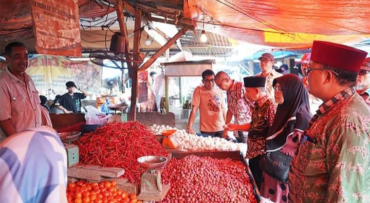 MUARABULIAN - Dalam rangka mengantisipasi Harga Bahan Pokok (Sembako) jelang Idul Adha tahun 2024, Pemerintah Kabupaten Batanghari melalui Tim Pengendalian Inflasi Daerah (TPID) melakukan sidak kewilayah Pasar Tradisional Keramat Tinggi Muarabulian, Kabupaten Batanghari, Kamis (13/6/2024).