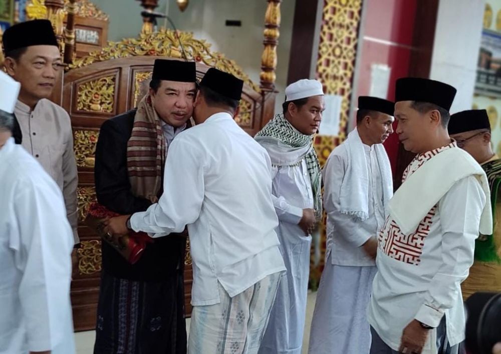 MERANGIN - Peringatan Hari Raya Idul Adha 1445 H meneguhkan sikap untuk terus berupaya menyempurnakan jati diri, sebagai manusia yang selalu menjaga hubungan vetikal dengan Allah SWT dan hubungan horizontal dengan sesama manusia. Hal tersebut diungkapkan Pj Bupati Merangin H Mukti pada sambutan sebelum melaksanakan Sholat Idul Adha 1445 H, di Masjid Baitul Makmur Merangin yang dihadiri Sekda Merangin Fajarman, Forkopimda dan para pejabat, Senin (17/6/24). ‘’Saya berharap peringatan Hari Raya Idul Adha mengilhami kita semua untuk terus tumbuh dan berkembang menjadi manusia yang berkualitas dan berkarakter, dalam rangka mewujudkan pembangunan manusia dan Kabupaten Merangin,’’ ujar Pj Bupati. Penanaman nilai agama lanjut H Mukti, menjadi salah satu poin utama dan terutama untuk membangun kualitas dan karakter masyarakat Kabupaten Merangin, yang jauh lebih maju dan lebih baik. Oleh karena itu Pj bupati mengajak setiap individu masyarakat Kabupaten Merangin dan setiap manusia, untuk senantiasa menumbuhkan sikap dan nilai positif dalam kepribadiannya. ‘’Dengan demikian sikap itu pada akhirnya akan mampu membangun secara alami solidaritas dan kerja sama antar sesama, antar elemen masyarakat, untuk mewujudkan masyarakat yang sejahtera dan berkeadilan,’’ terang H Mukti. Tampil sebagai Khatib pada Shalat Idul Adha itu, Ustadz Rikky dan Imam Ustadz Hermanto. Usai pelaksanaan shalat dilakukan silaturahmi dengan saling bersalam-salaman antar jemaah. Selanjutnya Pj bupati Merangin H Mukti bersama rombongan menyerahkan hewan kurban di tiga titik, di Masjid Baitul Makmur, Masjid Raya dan Masjid Miftahul Jannah. Pj bupati bersama rombongan juga meninjau penyembelihan hewan kurban di sejumlah masjid.