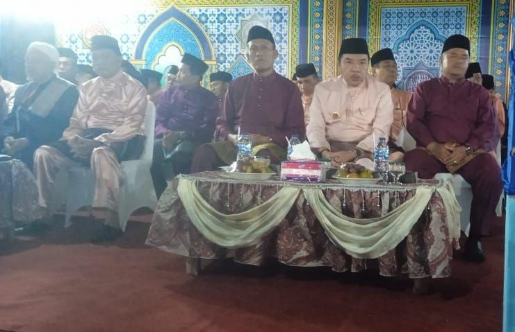 MERANGIN - Musabaqoh Tilawatil Quran (MTQ) ke-50 tingkat Kabupaten Merangin resmi dibuka Pj Bupati Merangin H Mukti, didampingi Kepala Kanwil Kementerian Agama Provinsi Jambi H Zoztafia, Sekda Merangin Fajarman dan Ketua TP PKK Merangin Hj Indria Mayesti Mukti, Kamis malam (05/7/24). Acara pembukaan MTQ tersebut berlangsung meriah dan spektakuler, diawali Syalawatan yang dilantunkan emak-emak dari Jangkat Timur dan dimeriahkan parade kafilah serta tarian massal, di Lapangan Bola Desa Baru Kecamatan Jangkat Timur. Ribuan masyarakat dari berbagai penjuru Kabupaten Merangin ‘tumplekblek’ terlihat sangat antusias menyaksikan pembukaan MTQ, yang akan berlangsung sepekan kedepan tersebut. ‘’Alhamdulillah antusias masyarakat untuk menyaksikan acara pembukaan MTQ ini ramai sekali. Artinya syiar Islam di Kecamatan Jangkat Timur ini sangat luar biasa,’’ ujar Pj Bupati. Melalui penyelenggaraan MTQ tersebut diharapkan Pj bupati, akan melahirkan generasi-generasi Qurani dan Islami yang akan menjadi calon-calon pemimpin berakhlak di masa depan. Kepada para Kafilah dari 24 kecamatan Pj bupati minta, agar mampu menjadikan kegiatan MTQ sebagai media untuk memperkuat ukhuwah, rasa persatuan dan kesatuan, baik antara sesama kafilah, Pemerintah dan masyarakat. Tampak hadir unsur Forkopimda Merangin, Asisten I Setda Merangin M Sayuti, Asisten II Setda Merangin Suherman, Kemenag Merangin, Baznas, para kepala Organisasi Perangkat Daerah, para camat dan seluruh KUA Merangin. Sebelumnya Pj bupati melantik para dewan hakim MTQ ke-50 tingkat Kabupaten Merangin, dihadiri Ketua LPTQ Merangin M Sayuti, Kemenag Merangin H Husaini, ketua MUI Merangin, KH Satar Saleh.