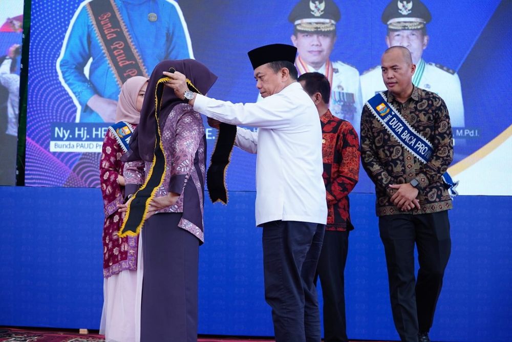 Dalam kegiatan ini Gubernur Al Haris juga mengukuhkan Hj. Hesnidar Haris sebagai Bunda Literasi, yaitu memberi edukasi terhadap minat baca anak-anak atau nantinya ada duta baca, agar minat baca anak-anak bisa meningkat.