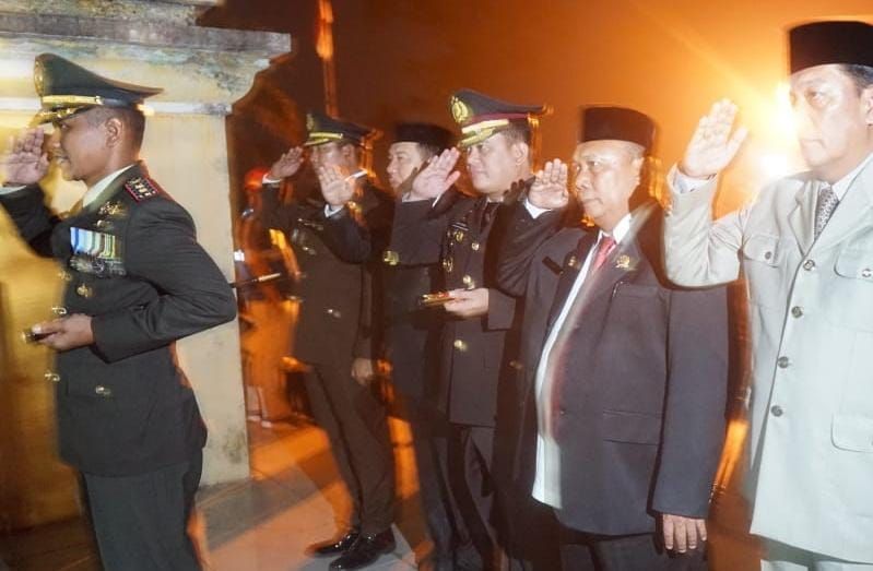 Merangin-Kabupaten Merangin menggelar Apel Kehormatan Renungan Suci dalam rangka peringatan Hari Kemerdekaan ke-79 Republik Indonesia, di Taman Makam Pahlawan Patriot Bhakti Sungai Ulak Bangko, dinihari Sabtu (17/8/24)