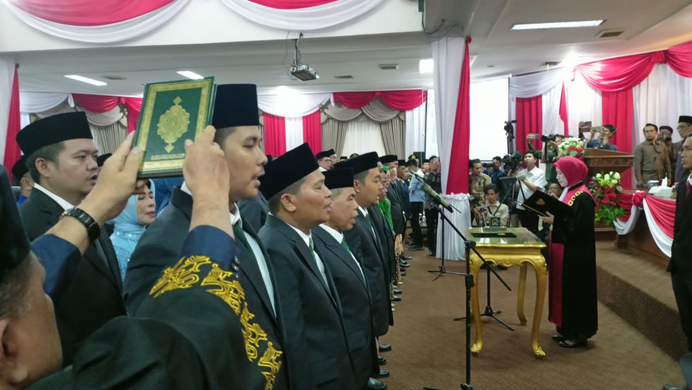 Pengucapan sumpah janji anggota DPRD Batanghari periode 2024-2029 dipandu oleh Ketua Pengadilan Negeri (PN) Muara Bulian.