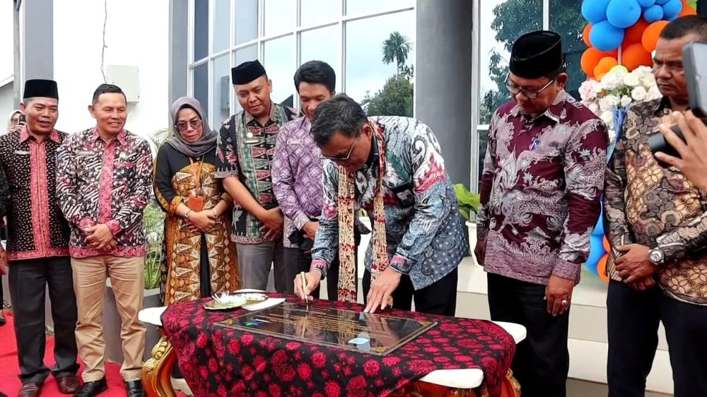 MERANGIN - Gedung Layanan Perpustakaan Kabupaten Merangin diresmikan oleh Plt Kepala Perpustakaan Nasional Republik Indonesia (Perpusnas), Prof E Aminudin Aziz, diwakili Bidang Pengembangan Sumber Daya Nasional RI Dr Aden Bondar, Kamis (12/9/24). Dikatakan Dr Aden Bondar pembangunan berkelanjutan pada prinsipnya bertumpu pada pengembangan Sumber Daya Manusia (SDM), karena SDM menjadi modal insani bagi terciptanya tatanan Pemerintahan dan tata negara. ‘’Sehingga apa yang dimandatkan dalam Undang-undang bisa mewujudkan masyarakat yang cerdas dan sejahtera. Masyarakat punya hak dalam menciptakan, mengakses dan menafaatkan informasi dan pengetahuan,’’ujar Dr Aden Bondar. Perpustakaan lanjut Dr Aden Bondar, sebagai institusi pendidikan non formal, memiliki misi dalam rangka keberlangsungan pendidikan seumur hidup bagi masyarakat Republik Indonesia secara keseluruhan. Terpisah, Pj Bupati Merangin H Mukti yang diwakili H Firdaus Staf Ahli Bupati mengatakan, Pemkab Merangin berbahagia sekali memiliki Gedung Layanan Perpustakaan tersebut. ‘’Dengan adanya Gedung Layanan Perpustakaan ini semoga dapat menjadi pusat belajar, riset, akses berbagai sumber ilmu dan informasi serta kreativitas bagi seluruh lapisan masyarakat,’’ ujar H Firdaus. Perlu disadari jelas H Firdaus, bahwa di era globalisasi saat ini tantangan untuk menjaga minat baca dan belajar menjadi sangat besar. Dimana era digital memberikan kemudahan dalam akses informasi. Tetapi lanjutnya, juga memunculkan tantangan seperti perubahan pola baca dan kualitas informasi untuk menghadapi dampak-dampaknya. ‘’Perlu bagi kita untuk beradaptasi guna lebih cerdas dalam memilih dan memanfaatkan informasi dari teknologi serta tetap menghargai nilai buku cetak dan bacaan,’’ pinta H Firdaus. Menghadapi tantangan itu jelasnya, Perpustakaan harus mampu beradaptasi dengan perkembangan teknologi dan tren terkini, agar tetap relevan dan bermanfaat bagi penggunanya, upaya diperlukan untuk memastikan bahwa literasi dan minat baca tetap berkembang di tengah arus perubahan digital. Dijelaskan Firdaus, Perpustakaan Kabupaten Merangin memiliki koleksi buku sebanyak 24.658 eksemplar dengan jumlah judul sebanyak 10.675 judul. Pada kurun waktu lima tahun terakhir jumlah kunjungan, baik ke Perpustakaan keliling, rolling book maupun Perpustakaan Daerah Kabupaten Merangin sangat bervariasi. Pada tahun 2021 tercatat sebanyak 4.956 pengunjung, tahun 2022 tercatat sebanyak 4.972 pengunjung dan pada 2023 mengalami peningkatan signifikan menjadi 7.097 pengunjung. Hal ini menjadi pertanda bahwa kebutuhan masyarakat terhadap Perpustakaan sebagai pusat informasi semakin meningkat, ditambah dengan semakin berkembangnya Lembaga-lembaga pendidikan, sekolah tinggi dan universitas di Kabupaten Merangin keberadaan Perpustakaan tentu tentu sangat dibutuhkan. Sedangkan Kadis Kearsipan dan Perpustakaan Merangin Hennizor menambahkan, pada peresmian Gedung Layanan Perpustakan itu, Dinas Kearsipan dan Perpustakaan juga melakukan Launching E-Perpustakaan, sebagai salah satu upaya perkembangan minat baca pada era digitalisasi. ‘’E-Perpustakaan adalah aplikasi membaca buku secara digital yang dapat mempelajari langsung melalui HP Android teknologi informasi telah berperan penting. Ini dipacu tuntutan terhadap kualitas layanan Perpustakaan,’’ ujar Hennizor. Selan itu lanjut Plt Kadis Dikbud Merangin ini, Dinas Kearsipan dan Perpustakaan juga mulai melaksanakan aplikasi sisten informasi kearsipan dinamis terintegrasi (Srikandi). Aplikasi ini diluncurkan Pemerintah sebagai Aplikasi umum bidang kearsipan yang dapat mendukung pengelolaan arsip dan tatakelola Pemerintahan Berbasis Elektronik. Diharapkan para kepada OPD dapat melaksanakannya dengan berkoordinasi kepada bidang Kearsipan Dinas Kearsipan dan Perpustakaan Kabupaten Merangin.