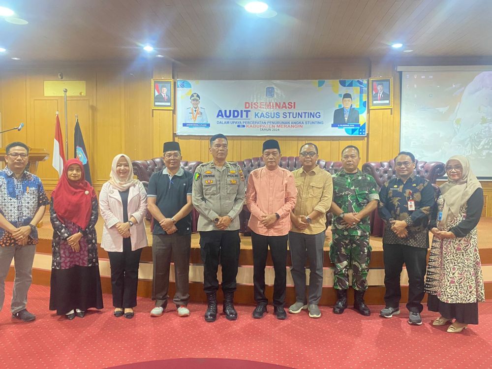 MERANGIN – Dalam rangka mendukung upaya penurunan angka stunting di Kabupaten Merangin, Komando Distrik Militer (Kodim) 0420/Sarko menggelar kegiatan diseminasi audit kasus stunting yang dilaksanakan di Aula Depati Payung Bappeda  Kabupaten Merangin, pada hari Kamis, 15 November 2024. Kegiatan ini dihadiri oleh Penjabat (Pj) Bupati Merangin yang diwakili sekda, serta seluruh pejabat Forkopimda (Forum Koordinasi Pimpinan Daerah) Kabupaten Merangin.