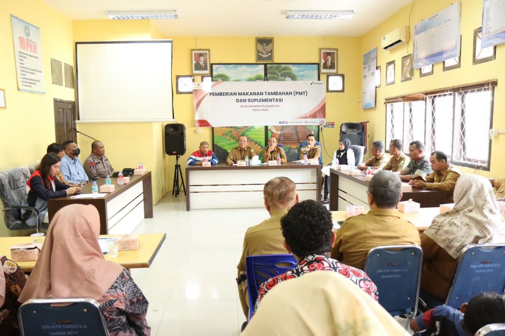 Program ini diawali dengan pemberian paket bahan pangan bergizi kepada anak-anak dan ibu hamil di Kantor Camat Kumpeh Ulu, Selasa (05/11/2024). Selanjutnya, kader posyandu akan mengolah bahan pangan lokal bergizi dan mendistribusikannya secara door-to-door setiap hari selama 90 hari ke depan. Program ini menyasar 11 anak stunting dan gizi kurang serta 10 ibu hamil dengan Kekurangan Energi Kronis (KEK) yang tersebar di empat desa tersebut.