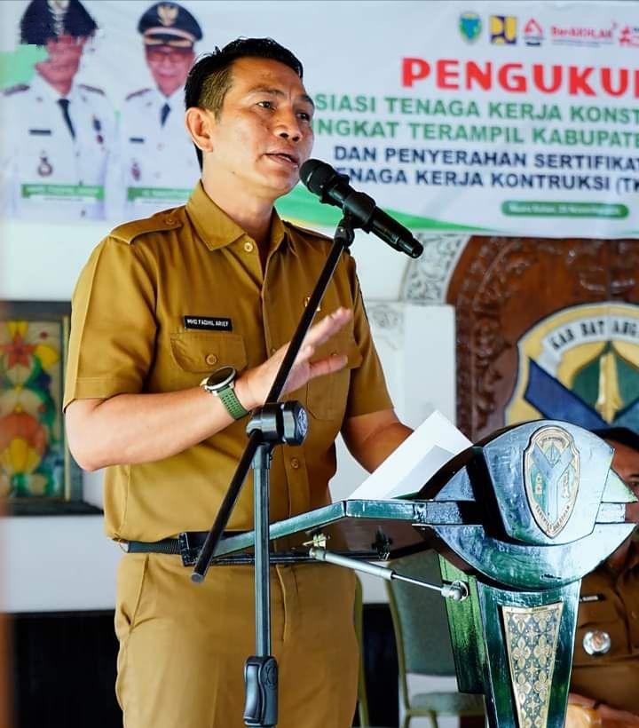 MUARABULIAN - Bupati Batanghari, Muhammad Fadhil Arief, SE mengajak para pekerja Kontruksi untuk menyadari pentingnya sertifikasi, karena Indonesia butuh Negara kerja Kontruksi yang tidak hanya handal dan kompeten, tapi juga bisa menunjukkan kemampuannya tersebut dan diakui yaitu melalui sertifikat kompetensi sesuai dengan yang diamanatkan dalam undang-undang Nomor 2 Tahun 2017 tentang jasa Kontruksi, pada pasal 70 ayat (1) bahwa setiap tenaga kerja kontruksi yang bekerja di bidang jasa konstruksi wajib memiliki sertifikat kompetensi kerja.