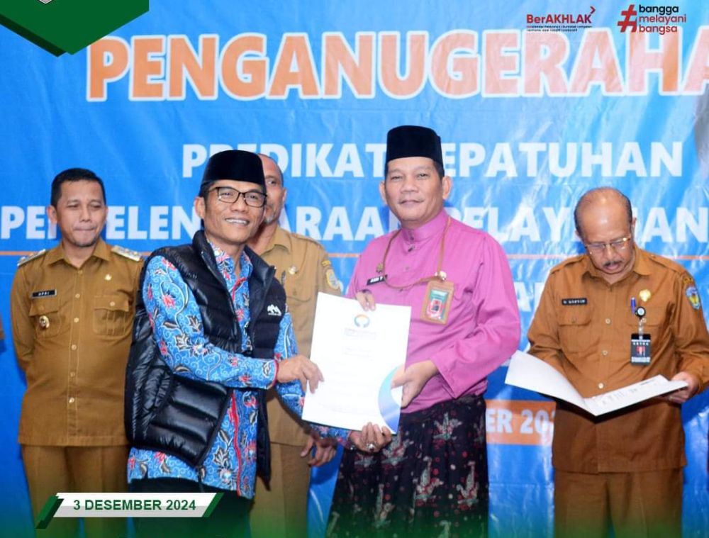 JAMBI - Pemerintah Kabupaten Batanghari dianugerahi kepatuhan penyelenggaraan pelayanan publik dengan predikat kualitas tertinggi dari Ombudsman RI Perwakilan Jambi.