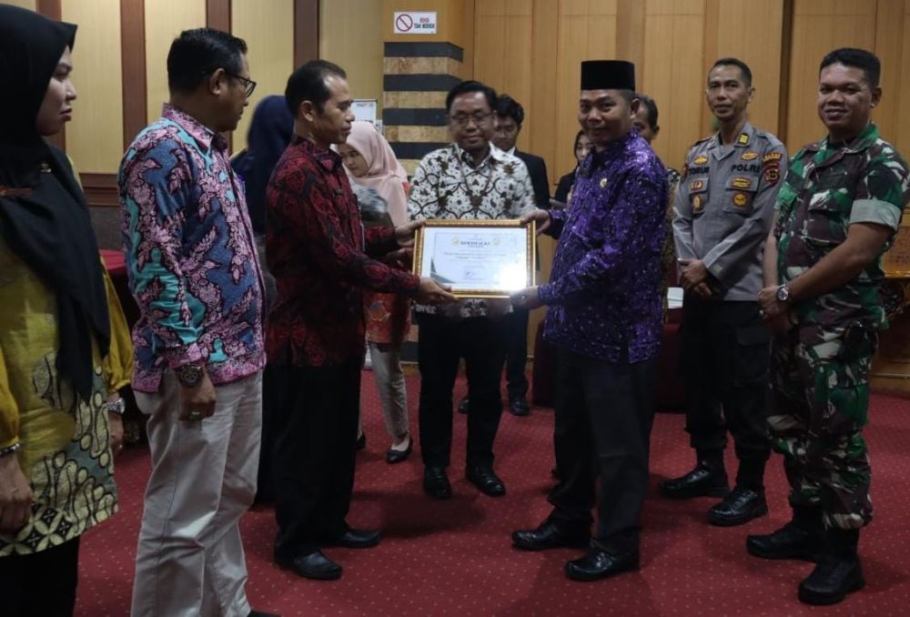 MERANGIN - Badan Pusat Statistik (BPS) Kabupaten Merangin, memberikan penghargaan kepada delapan instansi di Kabupaten Merangin, pada acara Rilis berita resmi statistik BPS Kabupaten Merangin 2024, Rabu (05/12). Acara yang berlangsung di Aula Depati Payung Bappeda Merangin tersebut, dibuka Pj Bupati Jangcik Mohza diwakili Asisten III Setda Merangin Isnaini. ‘’Selamat kepada delapan instansi yang meriah penghargaan dari BPS,’’ujar Asisten III Setda Merangin. Dikatakan Isnaini, relis berita resmi statistik BPS Merangin 2024 itu sangat penting untuk bahan perencanaan, pelaskanaan program dan evaluasi pembangunan serta berbagai kebijakan lainnya. ‘’Semoga dengan adanya data yang jelas, transparan dan dapat diandalkan, maka akan membangun kepercayaan publik terhadap kebijakan pemerintah daerah. Selain digunakan Pemerintah data itu juga dibutuhkan dunia usaha dan akademisi,’’ujar Isnaini. Sebanyak delapan instansi yang mendapatkan penghargaan itu adalah, tiga instansi penerima penghargan sebagai dinas yang mengikuti evaluasi penyelenggaraan statistik sektoral 2024. Ketiga dinas tersebut, Dinas Komunikasi dan Informatika (Kominfo) Kabupaten Merangin, Dinas Pengendalian Penduduk dan Keluarga Berencana Kabupaten Merangin dan Dinas Kependudukan dan Pencatatan Sipil Kabupaten Merangin. Lima instansi lainnya yang mendapatkan penghargaan, Dinas Tanaman Pangan dan Holtikultura sebagai responden paling responsif dalam kegiatan survei pertanian holtikultura (SPH) dan SP Palawija. Dinas Peternakan dan Perkebunan sebagai responden yang paling responsif dalam kegiatan Laporan Pemotongan Ternak Besar (LPTB), Badan urusan logistik (BULOG) Sarko sebagai responden tercepat dalam kegiatan pengumpulan data sekunder 2024. Badan Pengelola Keuangan dan Aset Daerah (BPKAD) Merangin sebagai responden paling responsif dalam kegiatan pengumpulan data sekunder 2024 dan Kantor Desa K koto Baru sebagai desa cinta statistik Kabupaten Merangin 2024. Kegiatan Rilis berita resmi statistik BPS Kabupaten Merangin 2024 itu, dilaksanakan dalam rangka menuju satu data Indonesia dan peningkatan penyediaan satu data Indonesia yang berkualitas. Tampak hadir pada acara tersebut, unsur Forkopimda Merangin, Ketua BPS Kabupaten Merangin Kuswan Gunanto, utusan dari sejumlah akademisi di Merangin, para kepala OPD terkait dan Kades Koto Baru.