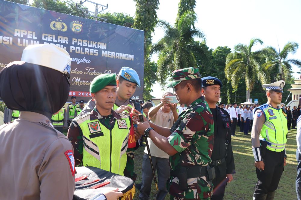 Acara tersebut dipimpin langsung oleh Dandim 0420/Sarko, Letkol Inf Suyono S.Sos, di halaman Mapolres Merangin. Operasi Lilin 2024 bertujuan untuk menciptakan situasi yang aman dan kondusif selama perayaan Natal dan Tahun Baru. Dalam apel tersebut, Letkol Inf Suyono menekankan pentingnya sinergitas antara TNI, Polri, dan instansi terkait dalam menjaga ketertiban dan keamanan di wilayah Merangin. “Apel gelar pasukan ini merupakan wujud kesiapan kita dalam menghadapi segala potensi gangguan selama perayaan Natal dan Tahun Baru. Mari kita bersama-sama menjaga situasi tetap aman, nyaman, dan kondusif bagi masyarakat, agar mereka dapat merayakan momen tersebut dengan penuh kedamaian,” ujar Letkol Inf Suyono dalam sambutannya. Lebih lanjut, Dandim 0420/Sarko Letko Inf Suyono S.sos, mengimbau kepada seluruh anggota yang terlibat dalam operasi untuk selalu menjaga kekompakan dan profesionalisme dalam menjalankan tugas. "Tingkatkan kewaspadaan dan koordinasi yang baik antar instansi, serta selalu responsif terhadap dinamika yang ada di lapangan," tambahnya. Apel gelar pasukan ini diikuti oleh ratusan personel gabungan dari TNI, Polri, Dishub, dan instansi terkait lainnya. Selain pengecekan kesiapan pasukan, turut dilakukan juga pemeriksaan kelengkapan sarana dan prasarana pendukung operasi.