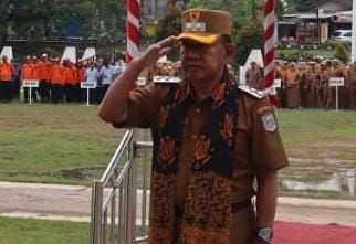 MERANGIN - Wakil Bupati Merangin, H. A Khafid Moein mengambil apel disiplinan perdana di halaman kantor bupati Merangin, yang diikuti seluruh pejabat dan ribuan pegawai di jajaran Pemkab Merangin, Senin (24/2/25). Pada apel tersebut, wabup menyampaikan pesan maaf Bupati Merangin H M Syukur yang mestinya hadir mengambil apel, tapi karena masih mengikuti retreat di Akademi Militer Magelang, Jawa Tengah sehingga belum bisa hadir. ‘’Pak Bupati titip salam kepada semua pejabat dan pegawai di jajaran Pemkab Merangin. Mudah-mudahan apel Senin depan Pak Bupati bisa hadir,’’ ujar Wabup yang saat itu tampak rapi mengenakan seragam baju kuning khaki dilengkapi sal selimpang. Wabup bangga kerena pada apel itu dibawah komando Sekda Merangin Fajarman, semua pimpinan Organisasi Perangkat Daerah (OPD) di jajaran Pemkab Merangin hadir semua, begitu juga dengan para pegawai tampak ‘meliber’ di lapangan opel. Semua lanjut wabup, sangat berkomitmen dengan niat yang tulus dan ikhlas bersama-sama cepat bergerak, membangun Kabupaten Merangin yang sama-sama dicintai dan disayangi. Selain menekankan kedisiplinan, wabup juga pesan pentingnya menjaga kebersihan Kota Bangko. Berdasarkan pengaduan sejumlah ketua Rukun Tetangga (RT) ke wabup, kondisi sampah sudah menumpuk di sejumlah tempat di Kota Bangko. ‘’Nanti pengaduan RT itu akan langsung kita sikapi. Setelah rakor pengendalian inflasi nanti, saya bersama OPD terkait akan langsung memantau kondisi tumpukan sampah itu dan langsung minta petugas membersihkannya,’’ ucap Wabup. Sebelumnya wabup sempat menghentikan apel yang baru dimulai. Hal itu karena masih banyak pegawai yang terlambat memasuki lapangan apel, sehingga wabup minta apel jangan dimulai dulu sebelum semua pegawai masuh ke lapangan apel.