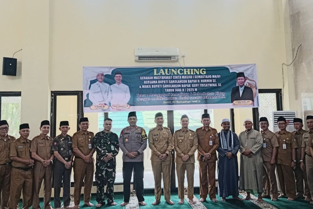 SAROLANGUN – Gerakan Masyarakat Cinta Masjid (Gesta Masjid) resmi diluncurkan di Kabupaten Sarolangun, dengan tujuan untuk meningkatkan kecintaan masyarakat terhadap masjid sebagai pusat ibadah dan kegiatan sosial. Kegiatan ini berlangsung di Masjid Komplek Perkantoran Pemda Sarolangun pada hari Senin (3/3/2025), yang dihadiri oleh sejumlah tokoh penting daerah. Dandim 0420/Sarko Letkol Inf Suyono, S.Sos, diwakili oleh Pabung Kodim 0420/Sarko Mayor Chk Dedy Afrizal, SH., MH, turut mengikuti acara peluncuran ini. Hadir dalam kegiatan tersebut juga Bupati Sarolangun H. Hurmin, SE, Wakil Bupati Gerry Trisatwika, SE, Kapolres Sarolangun AKBP Budi Prasetya, S.I.K, M.Si, serta pejabat lainnya seperti Pj. Sekda Ir. Dedi Hendri, M.Si, dan anggota Forkompinda Sarolangun. Acara dimulai dengan Shalat Dzuhur berjamaah, yang diikuti oleh seluruh peserta yang hadir, dilanjutkan dengan pembacaan doa oleh Kabag Kesra H. Fuadi. Dalam sambutannya, Bupati Sarolangun H. Hurmin, SE, mengungkapkan bahwa gerakan ini bertujuan untuk mengajak masyarakat agar terus menjaga kedekatannya dengan masjid, terlebih di bulan Ramadan. Bupati juga menjelaskan bahwa Gesta Masjid menjadi bagian dari rangkaian kegiatan sapari Ramadan, seperti Jum’at keliling dan Subuh keliling yang akan dilaksanakan di 11 Kecamatan di Kabupaten Sarolangun. Program ini, menurut Bupati, diharapkan dapat mempererat tali persaudaraan di kalangan umat Islam dan menjadikan masjid sebagai rumah kedua bagi umat. Pada kesempatan itu, Bupati Sarolangun juga resmi meluncurkan Gerakan Masyarakat Cinta Masjid (Gesta Masjid) dengan mengucapkan, "Mari kita jadikan masjid sebagai rumah kedua kita. Pada tanggal 3 Ramadhan, kami resmikan. Semoga program ini berjalan baik dan bermanfaat," harap Bupati. Setelah sambutan, acara dilanjutkan dengan tausiyah yang menginspirasi peserta untuk lebih mendalami makna ibadah di masjid, dan ditutup dengan sesi foto bersama antara Forkompinda dan seluruh peserta.Penulis: Doni Sobri
