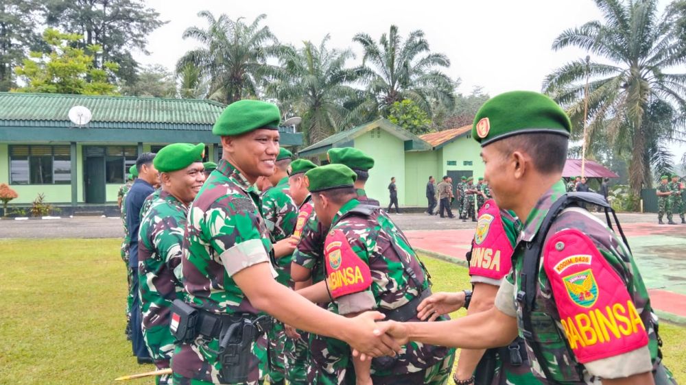 MERANGIN –Dalam rangka mempererat tali silaturahmi pasca Hari Raya Idul Fitri 1446 H, Komando Distrik Militer (Kodim) 0420/Sarko menggelar acara Halal Bihalal yang berlangsung dengan penuh kehangatan dan kekeluargaan. Acara yang diadakan di Markas Kodim 0420/Sarko ini dihadiri oleh Seluruh Koramil Jajaran Kodim 0420/Sarko. Kegiatan Halal Bihalal ini menjadi momentum penting untuk saling memaafkan dan memperkuat kebersamaan setelah menjalani ibadah puasa selama bulan Ramadan. Acara dimulai dengan sambutan oleh Komandan Kodim 0420/Sarko, Letkol Inf. Suyono S.sos, yang menyampaikan pentingnya menjaga tali persaudaraan dan semangat kebersamaan dalam membangun bangsa. "Halal Bihalal ini adalah kesempatan kita untuk kembali mempererat hubungan dengan saling memaafkan dan memperkuat rasa persatuan. TNI bersama masyarakat harus terus bersinergi untuk kemajuan daerah kita, khususnya dalam menciptakan keamanan dan kedamaian," ujar Letkol Inf. Suyono S.sos Selain itu, acara ini juga dimeriahkan dengan berbagai kegiatan, seperti pemberian santunan kepada anak yatim, doa bersama, serta ramah tamah antara anggota TNI, Polri, dan masyarakat. Suasana penuhc kebahagiaan pun tampak ketika seluruh peserta saling berjabat tangan, saling meminta maaf, dan berbagi kebahagiaan setelah menjalani bulan penuh berkah. Kegiatan halal bihalal ini juga menjadi wadah untuk mempererat komunikasi antara TNI dan masyarakat, sehingga daptat menciptakan rasa aman dan nyaman di wilayah Kabupaten Sarolangun. Harapannya, semangat kebersamaan yang terjalin akan terus berkembang dan membawa dampak positif bagi kesejahteraan masyarakat. Acara ditutup dengan doa bersama untuk memohon keberkahan dan keselamatan bagi bangsa dan negara, serta harapan agar dapat terus memperkuat semangat gotong royong dalam membangun Indonesia yang lebih baik.