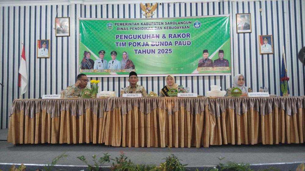 SAROLANGUN - Bupati Sarolangun H Hurmin menghadiri pengukuhan dan rakor Tim Pokja Bunda PAUD Kabupaten Sarolangun tahun 2025, di aula Kantor Disdikbud, Selasa (17/6). Dalam sambutannya Bupati H Hurmin menyampaikan apresiasi dan ucapan selamat kepada para pengurus Pokja Bunda PAUD yang telah dikukuhkan. "Insya Allah, tugas serta tanggung jawab yang telah diamanahkan ini, dapat dilaksanakan dengan sebaik– baiknya, serta penuh rasa tanggung jawab," kata H Hurmin. Bupati menekankan, pendidikan karakter dan pembentukan akhlak harus dimulai sejak dini. "Melalui PAUD, anak-anak akan mendapatkan stimulasi untuk dapat tumbuh dan berkembang secara optimal," cetusnya. Pendidikan anak usia dini, lanjut Hurmin, merupakan pondasi penting dalam pembangunan Sumber Daya Manusia. Menurutnya, masa usia dini adalah masa emas yang sangat memerlukan kualitas perkembangan anak dimasa mendatang. "Untuk itu, saya sangat berharap kepada seluruh anggota Pokja Bunda PAUD untuk berperan aktif dalam upaya mewujudkan layanan pendidikan anak usia dini yang berkualitas," tutupnya.