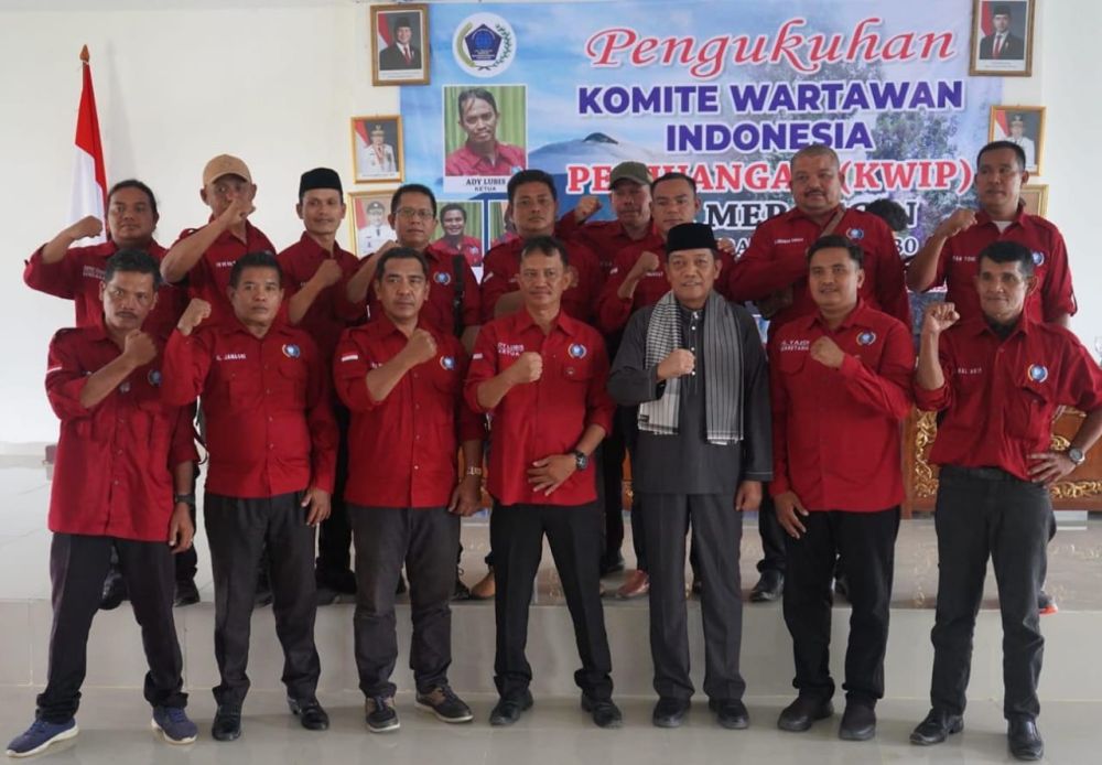 Bangko-Komite Wartawan Indonesia Perjuangan (KWIP) memiliki peran penting dalam menyuarakan aspirasi masyarakat dan mempromosikan pembangunan Kabupaten Merangin yang sama-sama dicintai. Hal tersebut sebagaimana dikatakan Bupati Merangin H M Syukur, melalui Sekda Fajarman pada sambutan pengukuhan pengurus Dewan Pimpinan Cabang (DPC) KWIP Kabupaten Merangin periode 2025-2030, di Aula Kantor Bupati Merangin, Senin (23/6). ‘’Saya berharap KWIP dapat menjadi mitra kerja Permerintah dalam menyampaikan informasi yang akurat dan objektif kepada masyarakat. Selamat kepada ketua dan pengurus DPC KWIP Merangin yang telah dikukuhkan,’’ ujar Sekda. DPC KWIP Merangin lanjut Sekda, dapat terus meningkatkan kualias dan profesionalisme dalam menjalankan tugas jurnalistik serta menjadi contoh bagi masyarakat dalam menyuarakan aspirasi dan pendapat. Sekda berharap kedepan DPC KWIP Merangin dapat terus menjadi mintra kerja Pemerintah dalam membangun Kabupaten Merangin yang lebih baik lagi menuju Merangin Baru 2030, dengan semangat baru, Merangin Berdaya saing, Akuntabel, Reformis dan Unggul. Pada acara itu, Sekjen DPP KWIP Fran Klin Dilano disaksikan Ketua DPP KWIP Defarizan mengukuhkan, Ady Lubis sebagai ketua DPC KWIP Merangin, M Yasdi Sekretaris DPC KWIP, Bendahara Deno Charles dan pengurus lainnya. ‘’Semangat untuk DPC KWIP Merangin, junjung tinggi kode etik jurnalistik, jaga kekompakan, jaga organisasi KWIP dengan baik dan teruslah berinovasi untuk kemajuan DPC KWIP Merangin,’’ ujar Fran Klin Dilano.