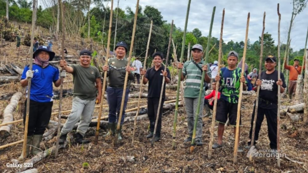 Bangko-Warga Desa Durian Rambun Kecamatan Muara Siau, beramai-ramai turun ke ladang menanam padi. Lebih dari 73 kepala keluarga berikut anggota keluarganya, terlibat pada tradisi turun-temurun warga setempat tersebut. Bupati Merangin H M Syukur menyambut gembira kegiatan tersebut. Menurut bupati ramai-ramai turun ke ladang itu merupakan budaya yang sudah turun temurun dilakukan masyarakat Merangin salah satunya warga Desa Durian Rambun. ‘’Tradisi budaya itu dilakukan dari nenek moyang kita dulu, untuk meningkatkan ketahanan pangan. Kegiatan itu dilakukan secara bergiliran, dari kebun keluarga satu ke kebun keluarga lainnya,’’ujar Bupati, Sabtu (04/10). Bupati berharap Trandisi Budaya itu terus dilestarikan, terlebih sekarang ini Presiden Prabowo tengah gencar melakukan ketahanan pangan, sehingga kegiatan tersebut akan sangat mendukung pogram Asta Cita. Terpisah, Masyhuri salah seorang tokoh masyarakat setempat yang terlibat langsung penanaman padi ladang itu menjelaskan, luas lahan yang mereka tanami mencapai kurang lebih 70 hektar. ‘’Kegiatan ini merupakan Program Ketahanan Pangan Non 20% dana Desa Durian Rambun, tapi kegiatan alami dari masyarakat yang dilakukan secara turun temurun. Melalui kegiatan ini semakin meningkatkan ketahanan pangan warga,’’ujar Masyhuri. Untuk bibit padi yang ditanam Jenis Padi ladang lokal, dengan umur tanam sampai dengan panen selama lima bulan. Kegiatan tanam padi ladang ini melibatkan hampir semua warga Desa Durian Rambun.