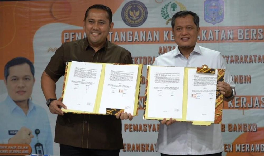 Bangko-Pemkab Merangin dengan Kantor Wilayah (Kanwil) Direktorat Jenderal Pemasyarakatan (Ditjenpas) Jambi, melakukan penandatanganan Memorandum of Understanding (MoU), Selasa (21/10). Penandatanganan kesepakatan bersama yang bertujuan untuk menguatkan sinergitas dalam mendukung penyelenggaraan dan pembinaan pemasyarakatan tersebut, berlangsung khidmat di Auditorium rumah dinas bupati Merangin. Pada kesempatan itu, bupati juga menyaksikan penandatanganan Perjanjian Kerjasama (PKS), antara Lembaga Pemasyarakatan (Lapas) Kelas II B Bangko dengan para kepala Organisasi Perangkat Daerah (OPD) di jajaran Pemkab Merangin. Penandatanganan itu merupakan tindak lanjut dari transformasi linier Kabinet Merah Putih, yang salah satunya menyikapi perubahan nomenklatur dari Kemenkumham, menjadi Kementerian Imigrasi dan Pemasyarakatan. ‘’Terimakasih Pak Kanwil sudah datang ke Merangin. Kami menyambut baik kerjasama ini, apalagi mungkin ada 90 persen penghuni Lapas warga Merangin. Melalui bimbinan itu warga binaan nanti semakin mundah beradaptasi di luar,’’ ujar Bupati. Dalam candaannya, bupati mengharapkan agar Lapas tidak terus-menerus membangun memperbanyak ruang tahanan, karena konotasinya semakin bertambah jumlah warga binaanya. Pembinaan keterampilan dan keahlian kepada warga binaan itu terang bupati, sangat penting. Bupati mempersilahkan semua OPD menindaklanjuti MoU, melakukan pembinaan ke warga binaan baik pertanian, perkebunan dan bidang lainnya. ‘’Saya minta para kepala OPD, perjanjian ini bukan sekadar seremonial belaka, tetapi harus diimplementasikan secara nyata, demi mewujudkan warga binaan yang terampil, mampu menjalani kehidupan sosial lebih baik lagi setelah bebas nanti,’’ harap Bupati. Mengingat sebagian besar warga binaan itu dari kasus Narkoba, bupati mengingatkan jajarannya jangan sekali-kali terlibat bahaya pengaruh Narkoba. ‘’Jangan nian satupun Aparatur Sipil Negara kita terlibat Narkoba,’’ pinta Bupati. Terpisah, Kepala Kanwil Ditjenpas Jambi Hidayat saat dibincangi Diskominfo, sangat berterimakasih kepada bupati Merangin dan jajarannya yang sangat mensupport, MoU yang dilakukan. Melalui MoU itu terang Kanwil, bupati telah mengoptimalkan fungsi pembinaan yang luar biasa untuk warga binaan. Kolaborasi tersebut menunjang program Asta Cita Presiden Prabowo, agar bisa lebih baik lagi. ‘’Warga binaan membutuhkan keahlian dan keterampilan, agar bisa mendapatkan pekerjaan setelah bebas nanti. Ini tentunya harus disupport Pemerintah Daerah, untuk mempersiapkan mereka kembali ke masyarakat,’’pinta Hidayat. Dipenghujung acara, Kanwil menyerahkan Merchandise kepada bupati Merangin dan sebaliknya, bupati juga menyerahkan Merchandise Merangin ke Kanwil dibarengi senyum khas H M Syukur penuh keakraban.