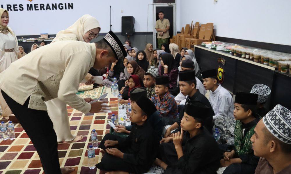MERANGIN - Kepala Kepolisian Resor (Kapolres) Merangin, menggelar kegiatan buka puasa bersama di Aula Wira Satya Mapolres Merangin, pada Senin (09/03/26). Kegiatan ini menjadi momen penuh kehangatan dan kepedulian di bulan suci Ramadan. Dalam kegiatan tersebut Kapolres Merangin AKBP Kiki Firmansyah Efendi, S.I.K.,M.H, didampingi oleh Ketua Bhayangkari Cabang Merangin Ny. Liliana Kiki, seluruh Pejabat Utama Polres Merangin beserta pengurus Bhayangkari cabang Merangin. Kehadiran anak-anak yatim, para Purnawirawan dan Warakawuri Polres Merangin dan PHL Polres Merangin menambah makna kebersamaan, sebagai bentuk nyata kepedulian sosial keluarga besar Polres Merangin terhadap masyarakat. Dalam sambutannya, AKBP Kiki menyampaikan bahwa kegiatan ini merupakan wujud rasa syukur sekaligus sarana mempererat silaturahmi antara personel Polri, Bhayangkari, dan masyarakat. “Kegiatan ini menjadi momentum bagi kita semua untuk lebih meningkatkan iman dan ketaqwaan kita kepada Allah SWT, sekaligus memperkuat kebersamaan dan semakin menumbuhkan nilai empati, kepedulian sosial, serta semangat berbagi kepada sesama,” ujar Kapolres. Ia menambahkan nilai-nilai yang terkandung dalam bulan Ramadan diharapkan mampu menjadi motivasi bagi seluruh personel Polres Merangin dalam menjalankan tugas dengan penuh keikhlasan dan tanggung jawab. “Melalui kegiatan ini kami berharap seluruh personel semakin solid, profesional dalam bertugas, serta mampu memberikan pelayanan terbaik kepada masyarakat sebagai bagian dari upaya mendukung transformasi Polri yang semakin presisi,” tambahnya. Acara yang diawali dengan pemberian tali asih kepada anak-anak yatim, para Purnawirawan dan Warakawuri Polres Merangin serta PHL Polres Merangin tersebut kemudian dilanjutkan dengan pemberian tausiyah singkat oleh Ustadz Baginda Martua Harahap S. Pd. I, dengan tema Ramadan Meningkatkan Iman Takwa dan profesionalisme dalam pelaksanaan tugas. Dalam tausiyahnya, Ustadz Baginda juga mengajak seluruh peserta menjadikan bulan suci Ramadan sebagai momentum meningkatkan kualitas keimanan, memperkuat ketakwaan, serta memperbaiki diri dan dapat merabah perasaan masyarakat dalam kehidupan sehari-hari karena pada dasarnya apapun profesi kita akhirat tujuannya. Kegiatan yang berlangsung dengan penuh khidmat dan rasa kebersamaan tersebut diharapkan semakin mempererat silaturahmi sekaligus menumbuhkan semangat berbagi di bulan suci Ramadan. Selanjutnya kegiatan ditutup dengan Doa dan berbuka puasa bersama.